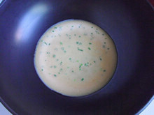 7:搅拌成没有颗粒的蛋面糊,最后撒入香葱末拌匀。