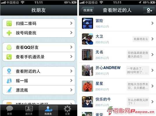 微信怎么用?微信拥有独特的找朋友方式,查看附件的人可以让用户查看附件1000米之内的微信用户。
