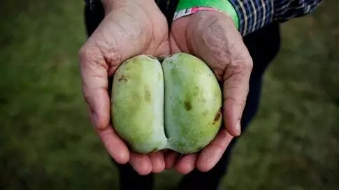 万寿果。主要产于北美洲,味道在香蕉与芒果之间,大家脑补一下吧。