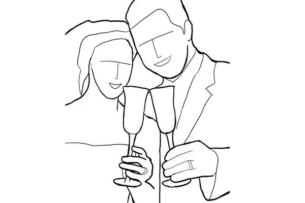 17、有趣而简单的姿势,碰杯中的新婚夫妇。对于更多的创意拍摄,你可以用自己的想法去挖掘。