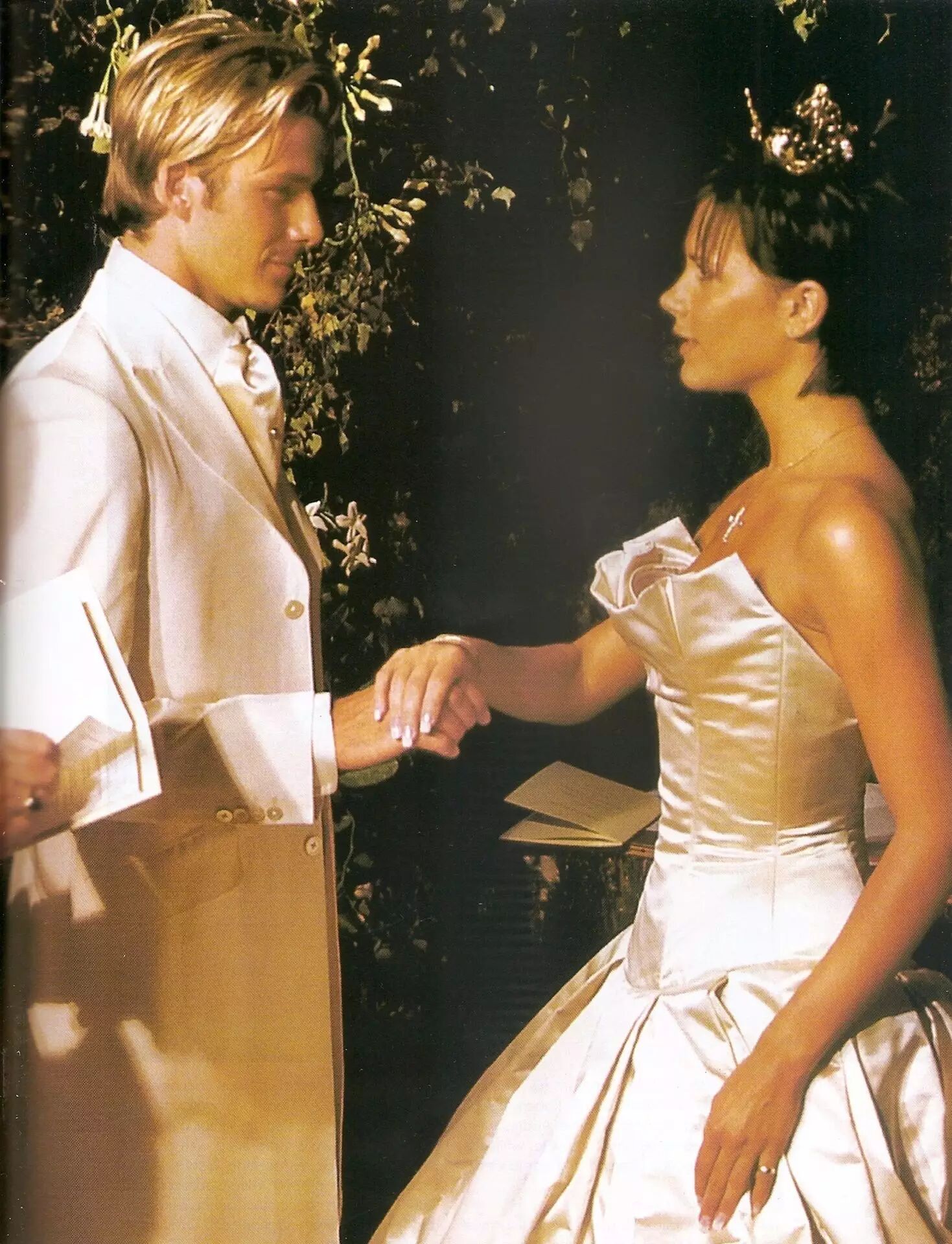 贝嫂当年那件王薇薇(Vera Wang)的婚纱如今看来依然设计感十足,当然,6万英镑的价格也是笔不菲的数目。