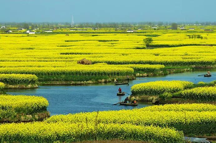 油菜花,属十字花科,绿叶黄花,在南方大面积种植,现在很多地方为了观光旅游,更是专门大规模培养。光看花形,不是很好看,但规模一大,形成一片黄色海洋,春风一起,波浪翻滚,煞是壮观。如果油菜花长在有特色的地方,比如江西婺源乡村,古典的徽派建筑为背景,油菜花又多了一份人文气息。