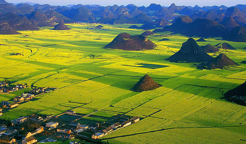 一般到某地拍油菜花,不是单纯拍摄那些黄色的花朵,主要是为了表现该地区的地域风光。因此摄影者最感兴趣的地方为广西、云南及皖南和江西婺源等地,因为那里具有鲜明的地方特点。