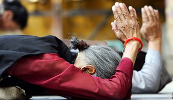 在圣像前诚心地合掌,仰慕佛德,依佛知见而行,才是上等供养。所谓“合掌以为华,身为供养具。善心真实香,赞叹香云布”。身体就像一个盘子,而双手合掌就是盘子里的一朵花。由此而知,合掌又代表“含苞待放”,指因地修行。花开结果,即是菩提。