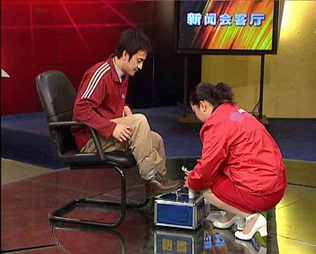 她拿来鞋刷子,蹲下来,开始替这些考官们擦鞋。