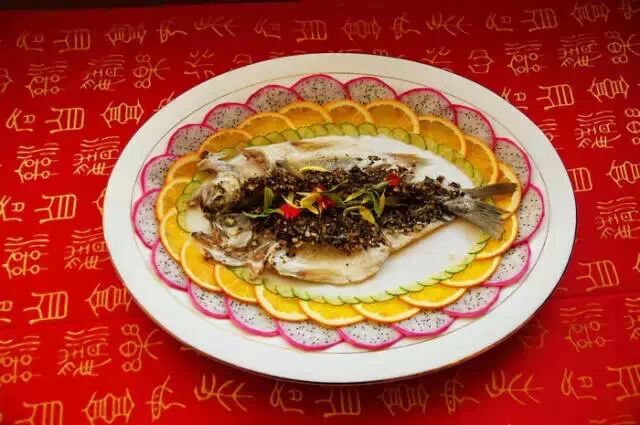 先用花雕酒将鱼全身抹到后装盘,倒上事先调制的美极鲜酱油、红茶末,再撒上红椒丝、姜丝和葱段用旺火蒸10分钟即可上桌。