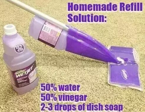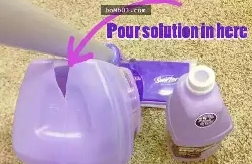 如果有些人不是使用单纯的平板拖把,而是这种清洁效果更强的免水除尘拖,每次都要买它的补充罐也是非常浪费,其实这时候只要在瓶子那里剪一道口,再把自制的清洁剂倒进去就可以啰!