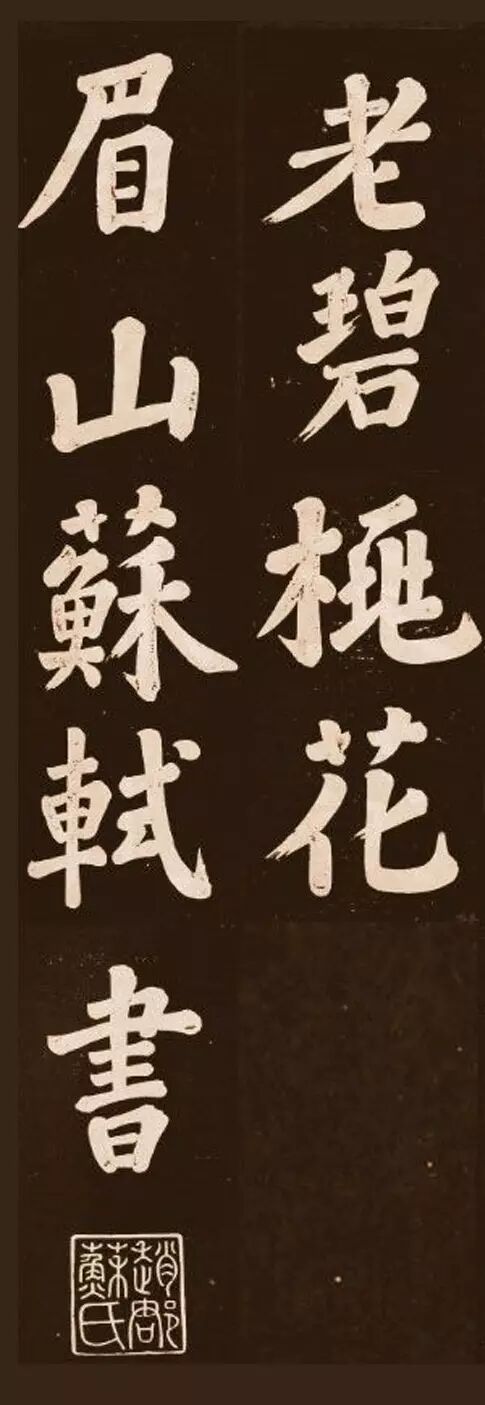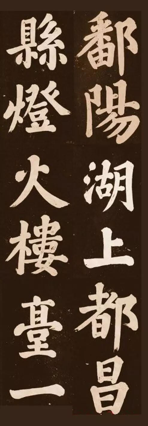 这首苏轼《过都昌》诗,在都昌,是家喻户晓的。我们看到作品,不难发现苏轼的大楷《过都昌》,呈现出诸多与其行书对应的豪放风貌,除了扁平以外,苏轼大楷用笔丰腴,轻重错落,不乏颜体的横轻竖重,整体风貌笔画舒展,不失为豪放佳作。