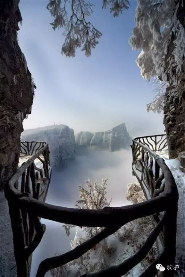到天门山一定要走一次玻璃栈道,会让你有一次终身难忘的悬崖终极体验。栈道除了每隔一米左右用钢筋混凝土搭一截支架外,全部是透明度极高的钢化玻璃。赤裸裸的透明挑战你的“敢”觉,迎接你的尖叫!