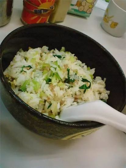 做法:1、青菜洗净切好,咸肉洗净切块,葱洗净剁碎,米淘洗干净