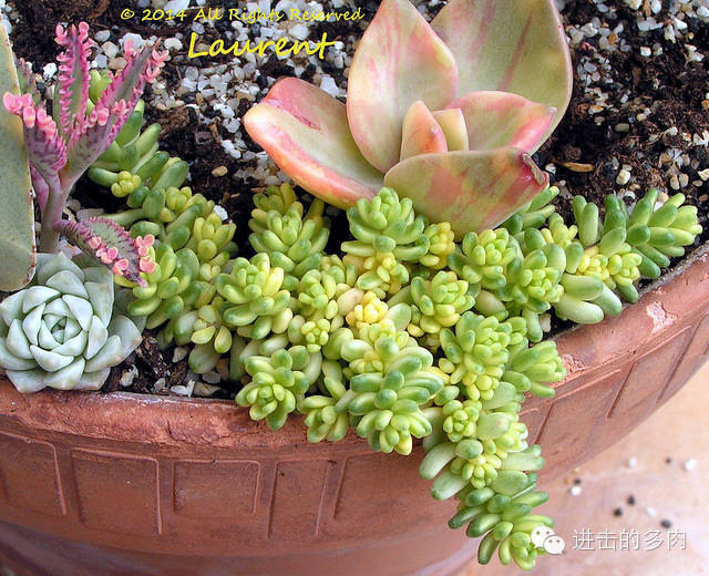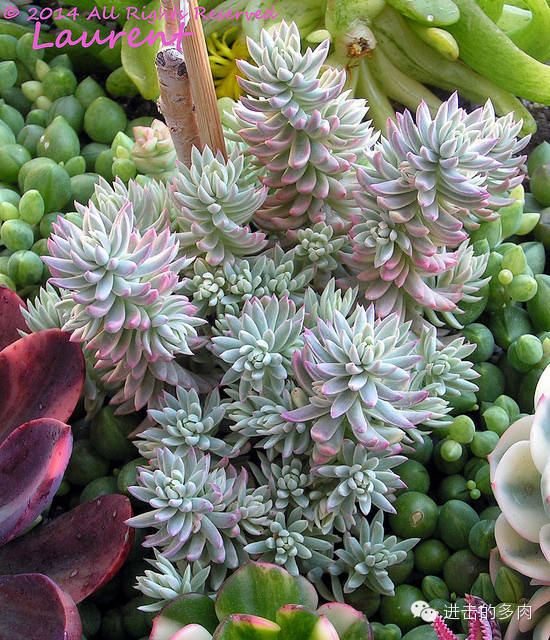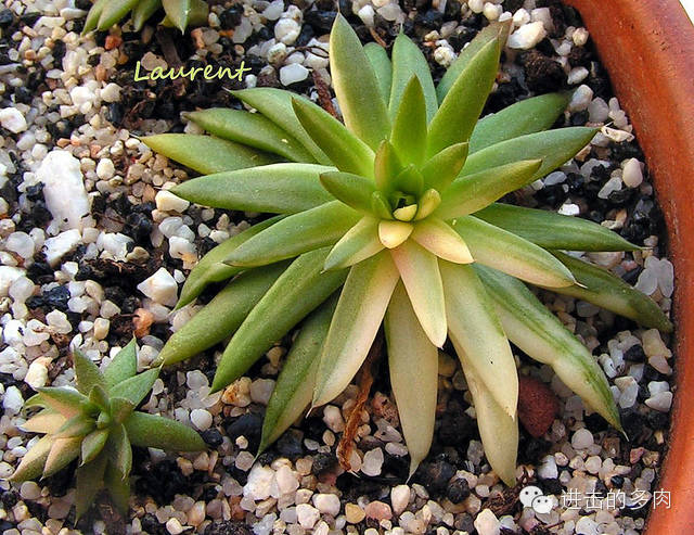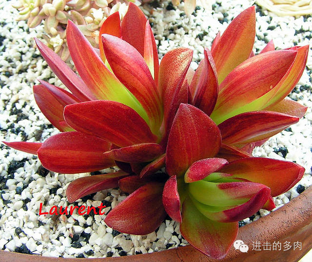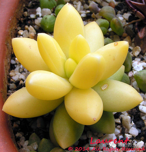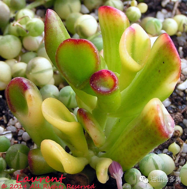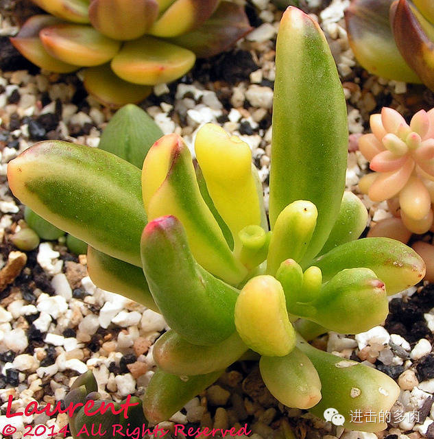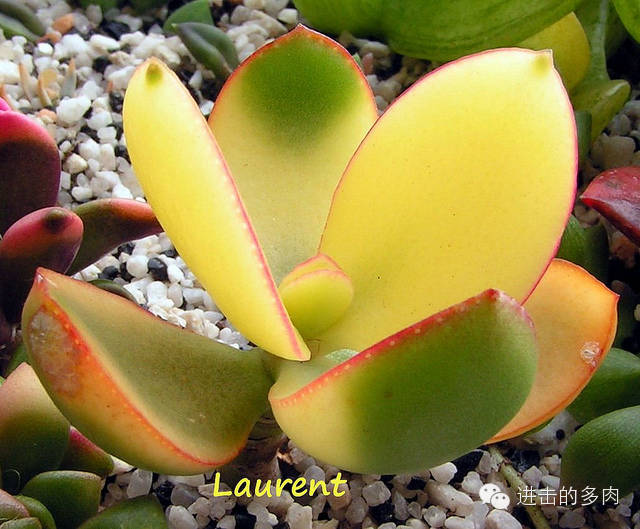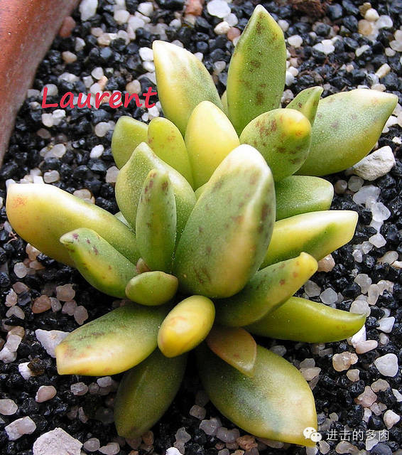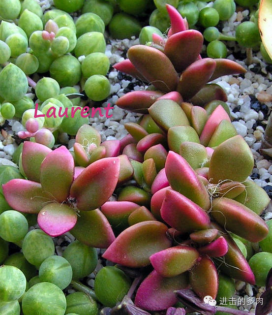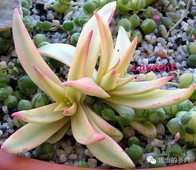 3、很多贵货都是普货的出锦品种,比如身价不菲的彩虹,其实就是大普货紫珍珠的锦化品种。一个头10来块的彩色蜡笔,也是普货小米星的出锦品种;还有就是大家熟知的白熊黄熊,都是熊童子的出锦品种。
