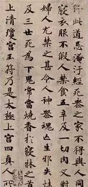 钟绍京的《灵飞经》小楷墨迹,遒劲端庄,结字疏展,工整精细,笃守楷法,其分行布白,虽有人工裁剪之美,但亦能于匀称整齐之中有参差错落的变化,其结构字势,虽有人工熨贴之美,但亦能于法度严谨之中有奇正姿态的变化,其结构字势,乃不失为小楷中的能品。