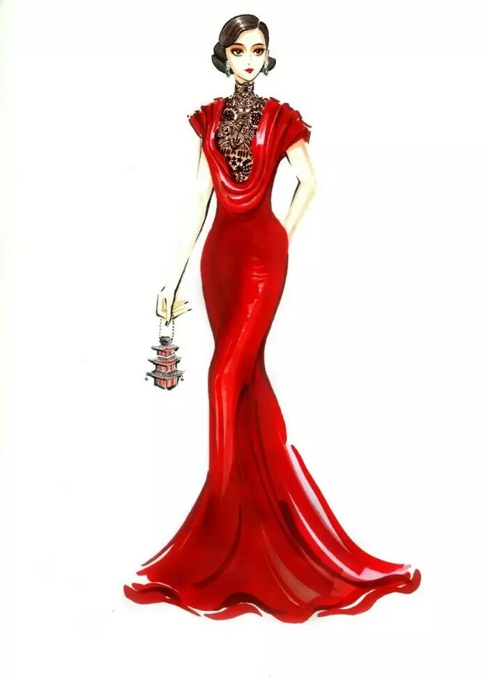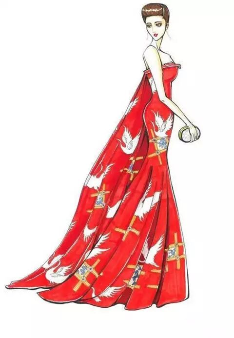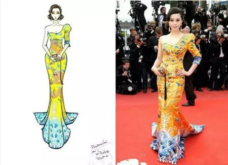 【手绘之家】范冰冰很漂亮,手绘大神把她的礼服手绘出来,更惊艳!