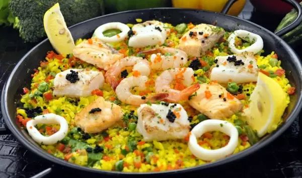 原料:红辣椒、洋葱、番茄、蒜头、蛏子(应该是青口,没买到)、青豆,鱼露、米、番红花、盐、黑胡椒、大虾、鲜贝,文蛤、番红花油、黑橄榄、奶酪粉。