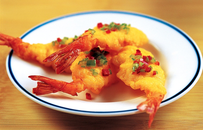 材料:虾,面包糠,红辣椒,鸡蛋。