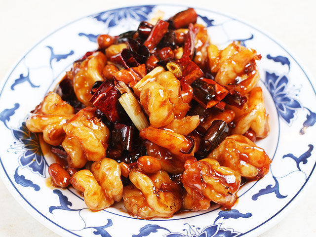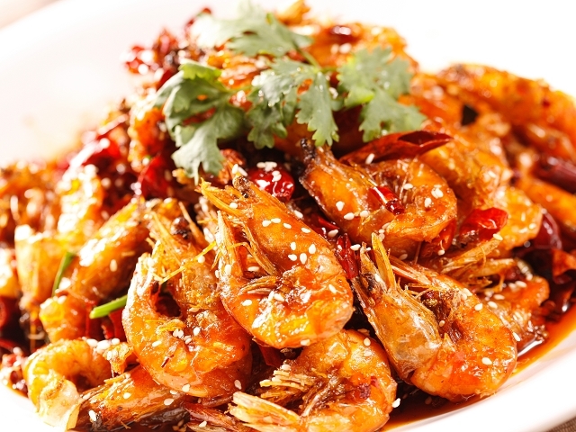 原料:大虾、大杏仁、葱姜蒜、干辣椒、 花椒、盐、白糖、料酒、醋、香油、淀粉、水、食用油。