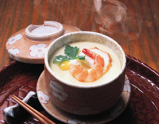 5、感觉蛋羹快凝固时把虾放进去,保留虾头是为了蛋羹有虾味更好吃