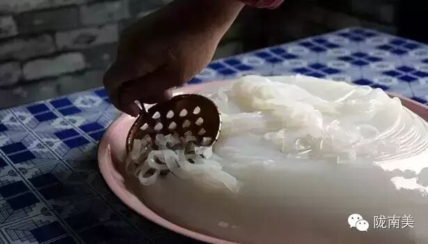 陇南人的漏鱼子,一般分黄、白两种,黄的用玉米面,白的用面粉加淀粉。夏天吃一般配浆水,清凉可口,沁人心脾,两碗下去瞬间凉快!