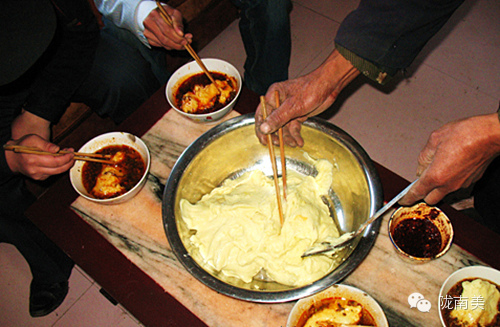 洋芋搅团——独特且花功夫,一种土到掉渣儿的土豆吃法~酸菜加醋,比肉香~~