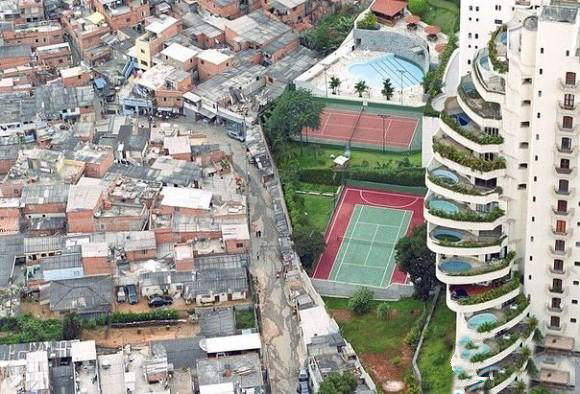 巴西的贫民区,富豪和贫穷之间的分界线。