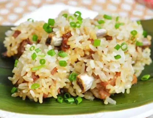 原料:糯米200克、猪小排300克、细香葱2根、五香粉1/2茶匙、酱油1/2汤匙、蚝油1/2汤匙、料酒1汤匙、植物油1/2汤匙、食盐1/2茶匙