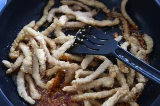 10、倒入炸好的里脊。