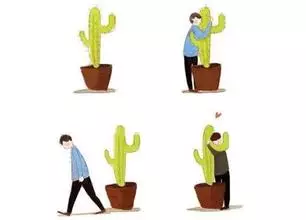 我们自然是看过的。那幅漫画在网络上流传颇广:一个人紧紧拥抱了仙人掌,离开时带走了满身的刺;而第二个前来的人,顺利地拥抱了没有刺的仙人掌,从此圆满结局。
