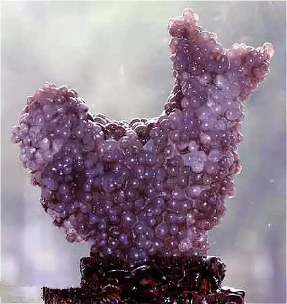 这是一块形似中国版图的葡萄玛瑙,这块奇石紫色与白色相间,葡萄球状结晶十分完美,只因整体形状与中国版图极其相似而闻名,令人们感叹。
