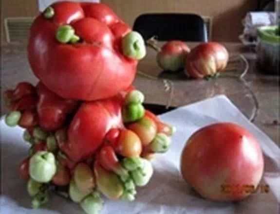 更惊讶的是玫瑰花中间出现了畸形草,还出现了畸形百合花,畸形茄子等等植物以及畸形青蛙等动物。
