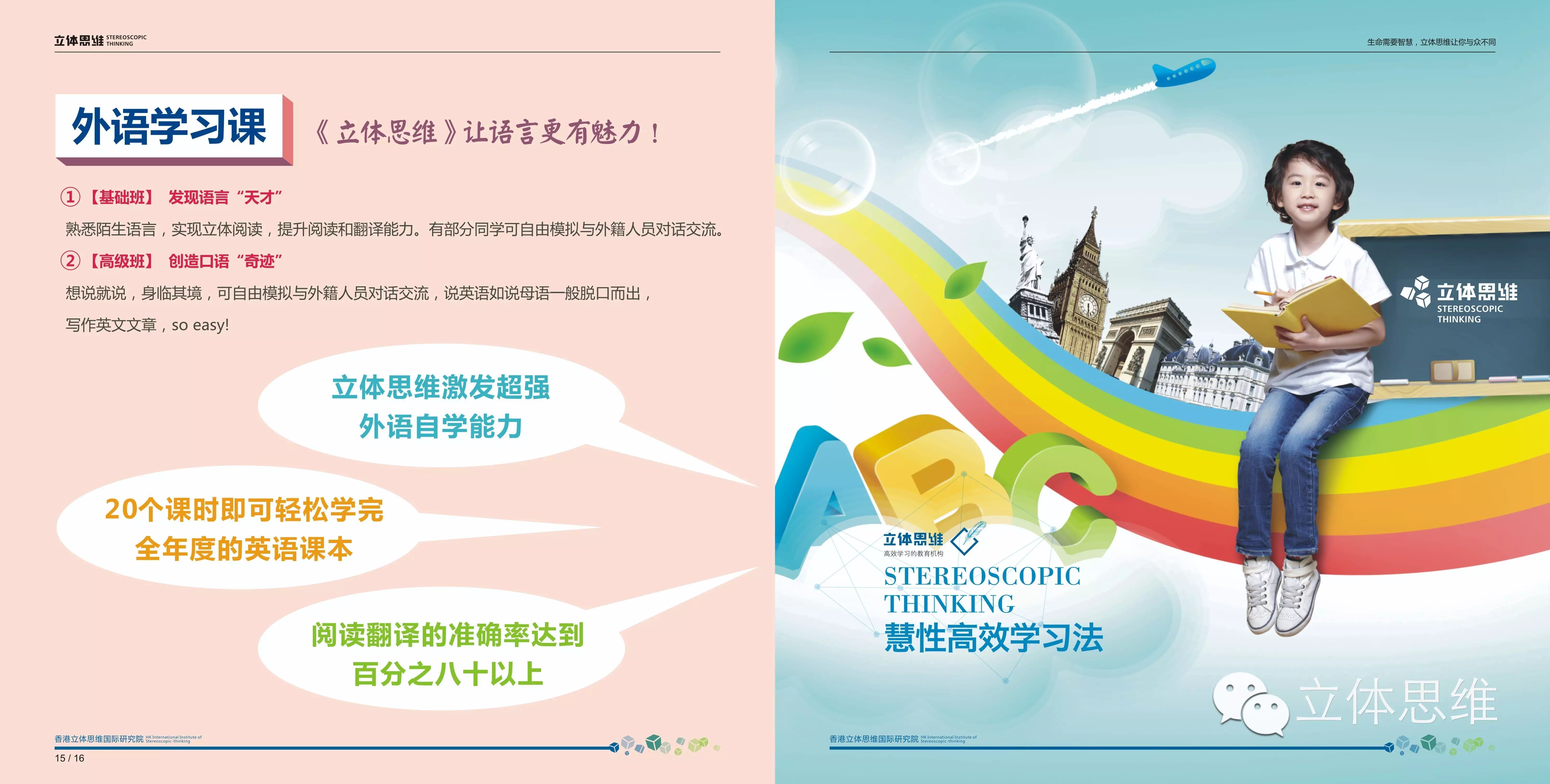 由平面思维模式转换成具有声音、图像、文字的立体思维模式(如看电视一样)。教育专家通过大量的实践表明,孩子通过科学的立体思维训练,构思文章更精妙,作文在原有的基础上平均提高10分,无需大量阅读,孩子能下笔成文,各种题材作文一气呵成,60%以上的学生能写出韵味十足的古诗词。