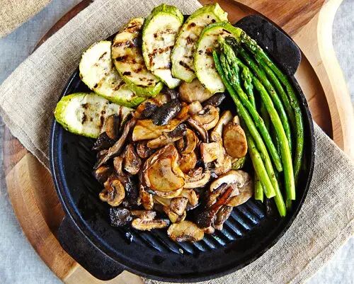 原料:蘑菇(口蘑+平菇+香菇+杏鲍菇)500g,西葫芦半个,芦笋50g。