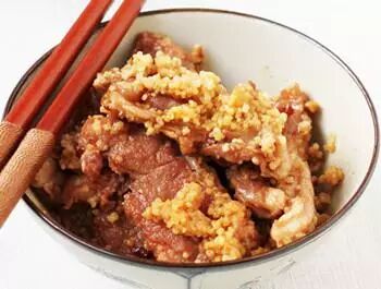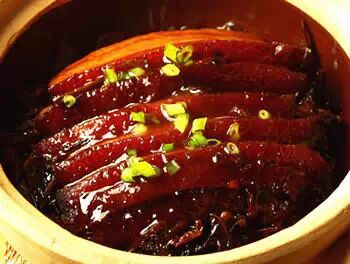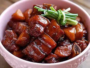 文章来自唐義公益平台山药红烧肉 原料:五花肉、山药、姜片、八角、桂皮、香叶、冰糖、料酒、生抽、老抽、盐 做法:1.五花肉切几大段,加姜片入冷水锅煮开后稍煮几分钟去尽水血,用温水洗净,表面用厨房纸擦干后切小块。 2.锅内倒少许油,倒入五花肉不断翻炒至出油,转中小火继续加入冰糖翻炒,炒至五花肉上色。 3.锅内加入料酒、生抽、老抽、姜片、八角、桂皮、香叶以及适量热水煮开转小火炖1个小时左右至五花肉软烂。 4.山药去皮切滚刀块浸在水里。 5.五花肉软烂后加入山药继续炖至山药软烂,最后大火收汁即可。 莲蓬扣肉 原料:五花肉500克、梅干菜100克、莲子50克、姜、葱、蒜、老抽酱油1匙、生抽1匙、料酒1匙、白糖、冰糖3个、八角、香叶 做法:1.梅干菜和莲子用水泡发;五花肉放入水中加八角、香叶、姜煮约15分钟,约7熟,捞出后浸入凉水中,擦干水分刷上一层蜂蜜。 2.锅里油烧至8成热,将肉皮向下放入油锅中炸至肉皮起泡,切成5毫米左右的肉片,拌上老抽、生抽、料酒,腌2分钟。 3.将莲子用肉片裹起来,肉皮面朝下摆放在碗中。 4.锅内热油放姜、蒜、干红辣椒爆香,放入沥干水份的梅干菜炒香,加入少量白糖、生抽调味。 5.再将炒香的梅干菜,铺上肉卷表面,用压紧实,将碗放入蒸锅中,中火蒸60分钟左右即可。 荷叶粉蒸肉 原料:五花肉500克、蒸肉米粉70克、料酒1茶匙、玫瑰腐乳汁2汤匙、生抽2茶匙、味精1/4茶匙、白糖1茶匙、干荷叶半张、姜3片、清水30毫升 做法:1.五花肉切成约5毫米的大片,放入姜片,调入料酒、腐乳汁、味精、白糖、生抽,搅拌均匀后腌制20分钟。 2.将蒸肉米粉加入五花肉中,再加适量清水搅拌,让肉均匀的裹上米粉。 3.蒸笼铺上荷叶,将肉摆放上去,放在蒸锅里,大火蒸40分钟左右,盛出,撒少许葱花装饰即可。 菠萝咕咾肉 原料:去皮五花肉300克、菠萝罐头100克、香菜根、胡萝卜皮、洋葱皮、芹菜叶子、蛋清1个、淀粉4大勺、原味番茄酱1大匙、白糖2大匙、盐小匙、料酒1大匙、白醋1小匙、油 做法:1.肉切成两厘米左右见方的块,放入盐、料酒、1大匙淀粉、半个蛋清挂糊腌制一下,放入用两根香菜根、洋葱,用手使劲的抓,尽量香菜和洋葱里的菜香揉到肉里,腌制一刻钟左右。 2.把胡萝卜皮、芹菜叶、洋葱、香菜根用少量的水煮5分钟。 3.把腌制好的肉块放入玉米淀粉中滚一下,让上面沾满淀粉,攥一下,让淀粉结结实实的粘在肉上,这一攥肉块也会变得圆了。 4.把肉球放入五成热的油锅里炸制外皮微黄后捞出,复炸,炸到外皮发硬,颜色金黄捞出,沥油。 5.锅中放入1大匙油,放入番茄酱,翻炒1分钟左右,炒出红油,放入糖一起炒,倒入蔬菜清汤,放入盐,烹入水淀粉,最后放点白醋搅匀,下入炸好的肉块和菠萝,翻几下,让锅中的酱汁裹满肉块和菠萝即可出锅。 东坡肉 原料:五花肉500克、香葱100克、姜50克、黄酒200克、生抽、白糖 做法:1.猪肉洗净,冷水下过,水开后焯5分钟,切成方块。 2.砂锅底部垫上葱、姜片,将切成方块的肉皮朝下码放入锅内,加入黄酒、生抽、白糖,大火烧开,文火炖2小时。 3.炖好的五花肉捞起,皮朝上码放在大碗内,淋上煮肉时的原汁,入锅蒸30分钟即可。 水煮肉片 原料:里脊、白菜叶、豆芽100克、青蒜4根、大骨汤1碗、姜3片、干辣椒圈1汤匙、花椒1汤匙、八角2个、盐1茶匙、黑胡椒1茶匙、蛋清1个、淀粉2茶匙、盐1茶匙鸡精0.5茶匙辣椒粉0.5茶匙花椒粉0.5茶匙 做法:1.白菜切段,豆芽洗净,里脊肉切片用盐、黑胡椒、蛋清,腌渍20分钟后拌入淀粉静置。 2.冷油下入花椒、干辣椒、八角,炸出香味,花椒、辣椒捞出。 3.1汤匙炸出的花椒油,把姜片切丝炒微黄,下入白菜和豆芽炒均匀,兑入骨头汤,煮开。 4.煮熟的豆芽白菜捞出放碗里。 5.肉片大火焯熟,捞在碗里,花椒粉辣椒粉混合撒上面,青蒜切末撒上面,过滤汤水倒进碗里,另起锅3-4汤匙花椒辣椒油,烧热,浇上面即可。 焦溜牛肉片 原料:牛里脊200克、玉米淀粉150克、盐2克、酱油10克、葱10克、姜5克、米醋30克、黄酒10克、白糖10克、水、油400毫升 做法:1.牛肉剔去筋膜,切成大片;葱切小片,姜切丝,用少许凉水泡半小时,即成葱姜水。 2.牛肉里放黄酒、少许葱姜水和1克盐,搅拌到吸收完全,表面有粘性。 3.用水把玉米淀粉调匀,水要一点一点放,抓至粘稠有劲后倒少许油,朝同一方向搅匀。 4.锅内倒油,油量要大,烧至七成热,把牛肉片一片片的均匀沾上调好的糊,大火炸至表面脆硬出锅,再复炸一下至酥脆。 5.锅中放20克清水、米醋、酱油、白糖和1克盐烧开,放入中等浓度的水淀粉,倒入少许炸牛肉的热油搅开。 6.把炸好的牛肉放进去大火快速炒匀即可。 甜辣酱牛肉 原料:牛里脊肉300克、薄荷少许、生姜1块、蒜瓣5颗、泰式甜辣酱50克、盐2克、生抽5克、料酒5克、白胡椒粉、水淀粉、油30克 做法:1.牛肉顺横纹顺片,越薄越好,加入盐、生抽、料酒、白胡椒粉、水淀粉搅拌均匀,再加入10克油一起搅拌,腌制30分钟。 2.薄荷用流动的水流干净,沥干,切碎;蒜瓣拍成蒜末,姜切成姜末。 3.锅烧热,倒油,把姜蒜末、薄荷碎倒入锅里爆香,倒入泰式甜辣酱炒匀,腌制好的牛肉倒入锅内,翻至变色,并使酱汁均匀地裹住牛肉,关火,用余温将牛肉浸熟即可。 锅包肉 原料:猪里脊240克、水、油、盐、料酒1小勺、淀粉、葱丝10克、蕃茄酱70克、浓缩橙汁2大勺、白糖、白醋 做法:1.猪里脊洗净,放入冰箱冷冻室冻至略硬后取出,
