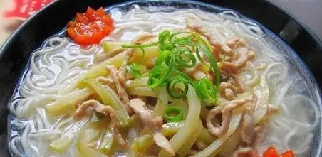材料: 瘦肉150克、榨菜半个、葱2根、拉面酌量、料酒半大匙、酱油半大匙、湿淀粉半大匙
