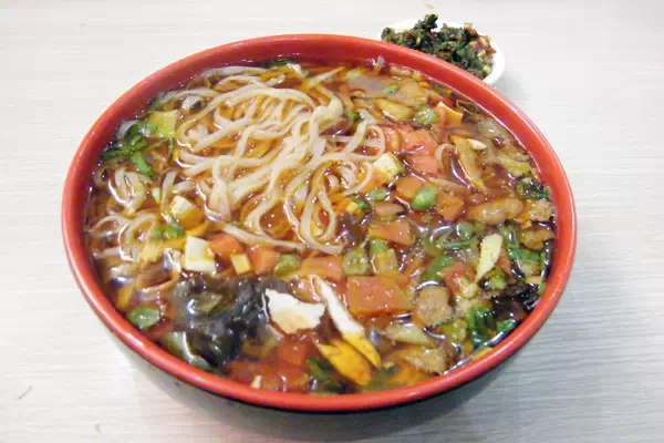 7、面条煮好过凉水再盛出,浇上做好的氽儿即可。