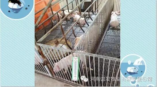 如果猪舍内没有合适的挂温度计地方,可以在不同季节对不同高度的温度进行校正,比如说冬季两米高处比猪背部平行处高2℃的话,那看到温度计显示为22℃时,真实的温度就应该是20℃。