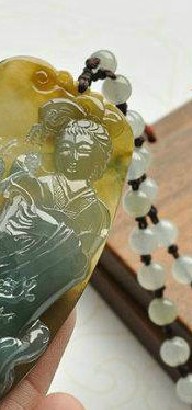 翡翠佩在翡翠饰品中所占比例最大,在香港市场常见的是以钻石白金镶嵌的翡翠佩,镶嵌的白金钻石部分,行家称其为“花头”,用白金项链佩戴,这种佩戴方式装饰味较强。国内收藏者则更喜欢编绳打节佩戴,这种节艺方式以简洁见长,多了一种古朴之美。