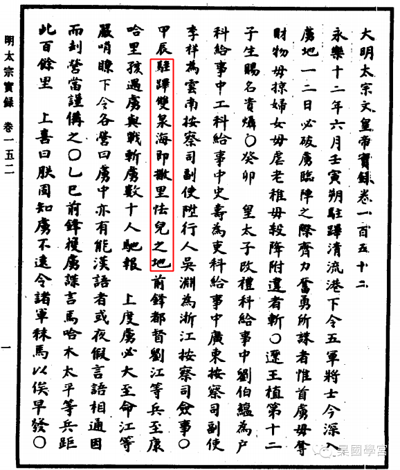 ○甲辰驻跸双泉海即撒里怯儿之地前锋都督刘江等兵至康哈里孩遇虏与战斩虏数十人驰报 上度虏必大至命江等严哨了下令各营曰虏中亦有能汉语者或夜假言语相通因而劫营当谨备之