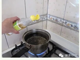倒入约半碗的白醋(也可以用茶叶)。加水煮沸约三四分钟