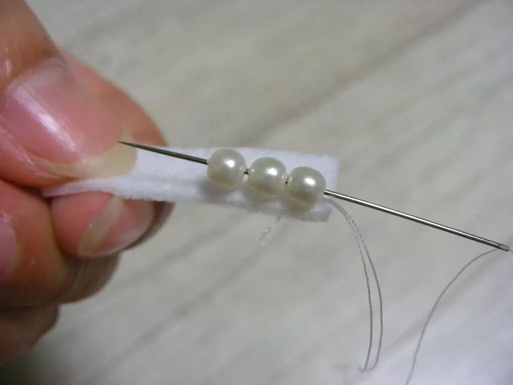 珍珠串到不织布上,做成珍珠花盘