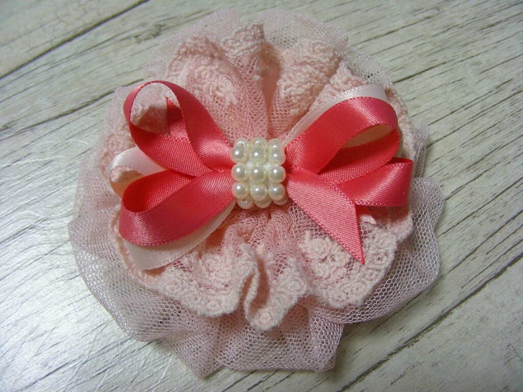 用到了0.9cm的丝带 蕾丝花边 粉色网纱