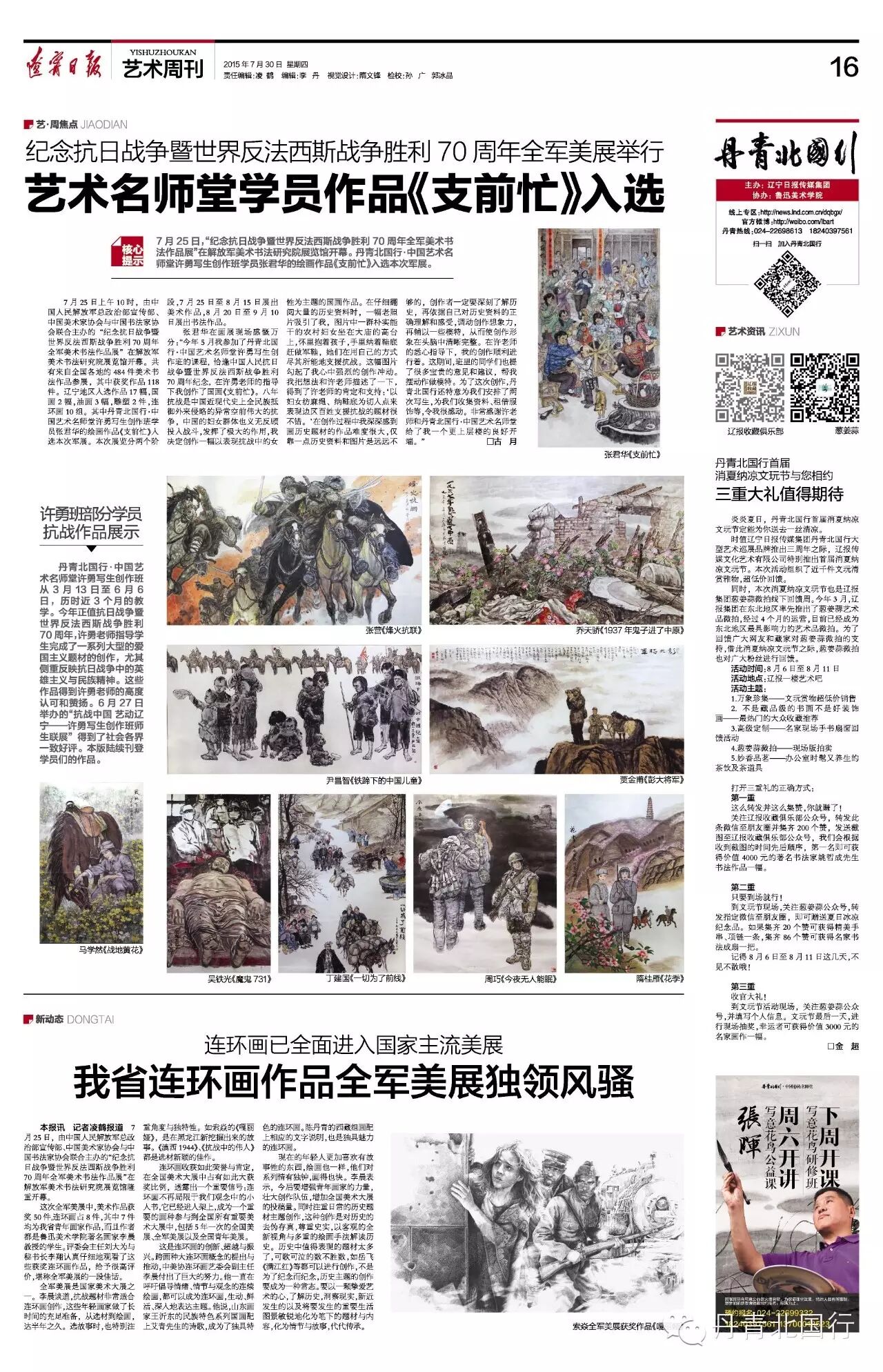 7月25日,由中国人民解放军总政治部宣传部、中国美术家协会与中国书法家协会联合主办的“纪念抗日战争暨世界反法西斯战争胜利70周年全军美术书法作品展”在解放军美术书法研究院展览馆隆重开幕。