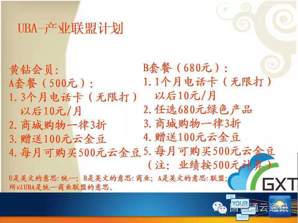 UBA立足云通讯服务产品,打造全球领先的综合性云通讯平台服务商,充分利用移动互联网大发展的机遇,结合了 <云通讯+绿力产品+理财+实体店>这四大产业联盟,