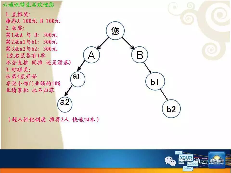 第二个是层奖:以我们名字以下的第一层,店与店的层奖是1万元,这也叫回本奖。(2-n层)每层2500元。