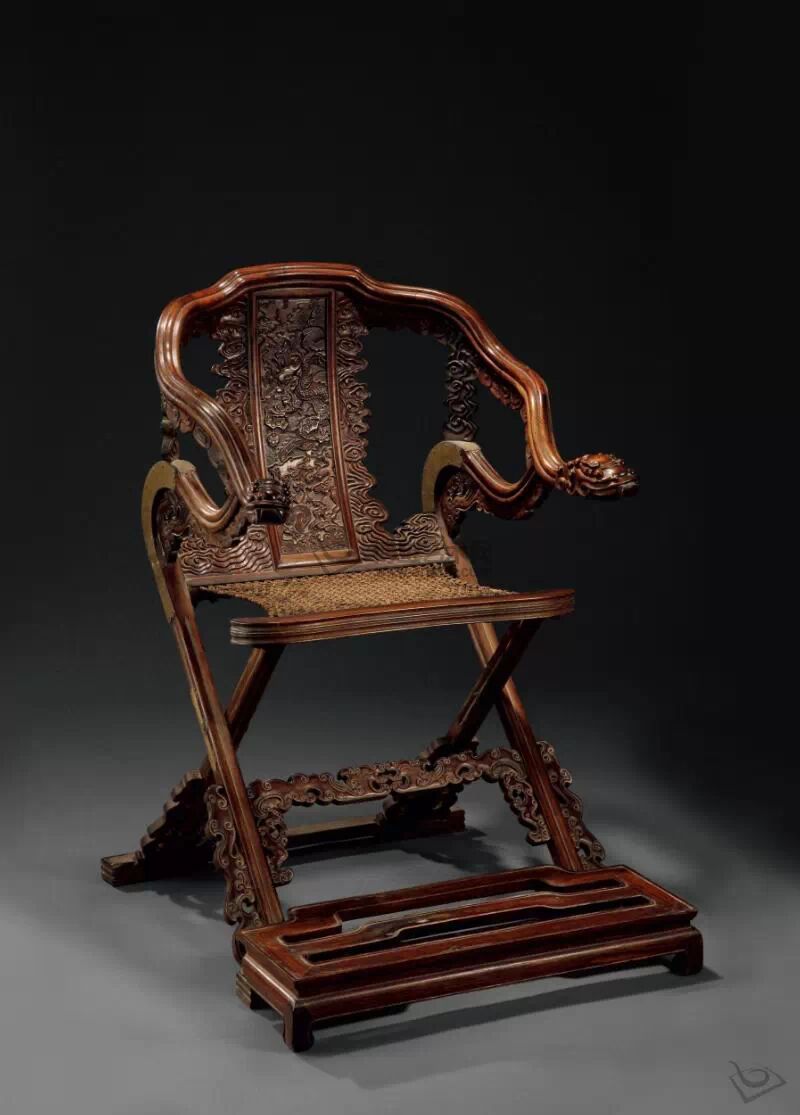 交椅是一種很古老的椅子,因椅子腿呈交叉狀,故名“交椅”,是可以折疊的交足椅子。交椅出生于唐代,流行于宋代。交椅可分爲直後背和圓後背兩種,其交接部位一般都用金屬飾件釘裹。明代的交椅以圓後背爲多。