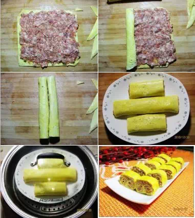 8.卷好后,移到蒸锅中,大火蒸15分钟。