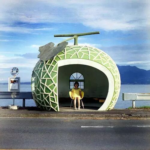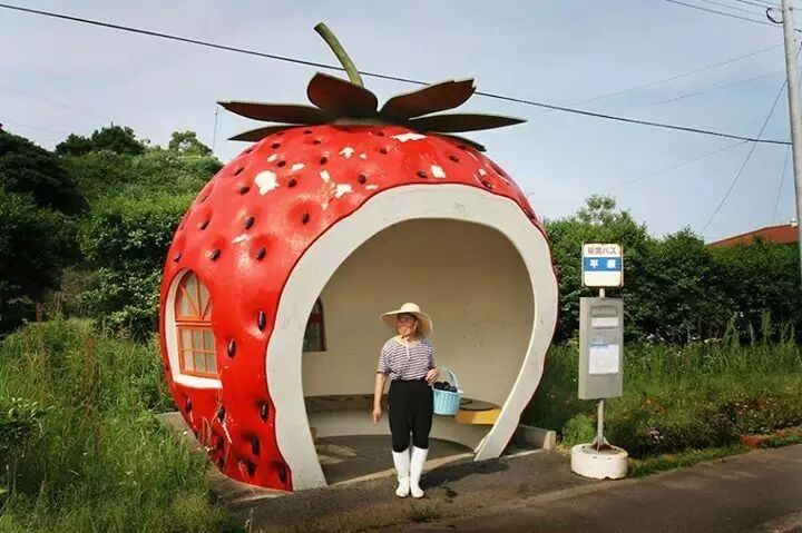 日本长崎的公交车站,做成了各种水果的模样,这样的车站,恐怕是吃货们的最爱。