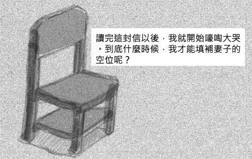 读完这封信以后,他嚎啕大哭。他不停地问:自己要怎样才能填补妻子的空位呢。