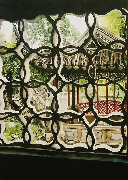 ,透过漏窗可隐约看到窗外景物。为了便于观看窗外景色,漏窗高度多与