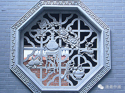 满格的装饰性透空窗,外观为不封闭的空窗,窗洞内装饰着各种漏空图案