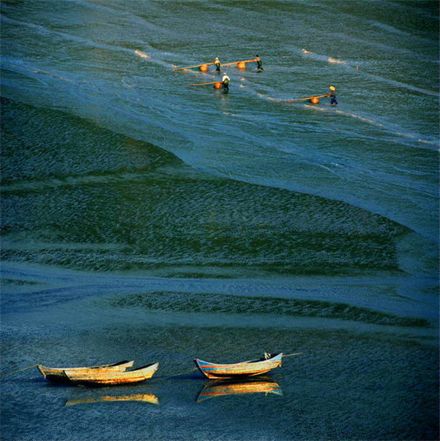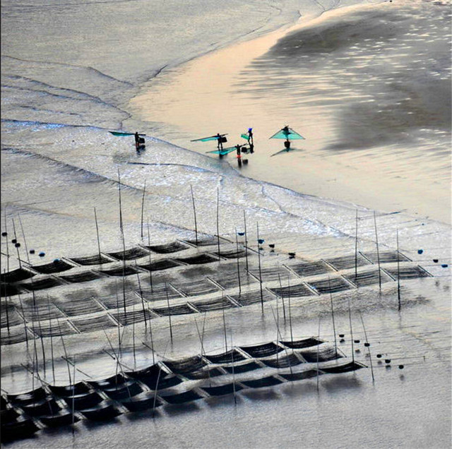 冬天 | 这期间正是北岐、沙塘里、馒头山、花竹、东壁、文岐等拍海上日出日落的最佳时期,阳光低色温的光线照射下的海面,金光轻撒,海面荡起金色的波光,渔民在一片金光中劳动,一曲曲渔歌让人心醉。南方的冬天尽管姗姗来迟,也很少有北方那样千里冰封、万里雪飘的壮观场面,但时常会舞动她那神奇的面纱,阵阵凛冽的寒风,流露出他那清淡、纯洁、脱俗的主调之美。使得霞浦这片滩涂更加别具一格,扑朔离迷。